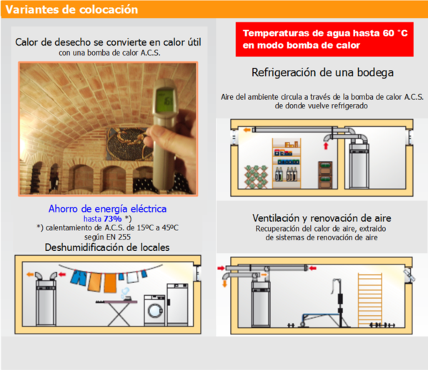 Debido a su especialización a temperaturas altas se pueden alcanzar hasta 60ºC en modo bomba de calor.